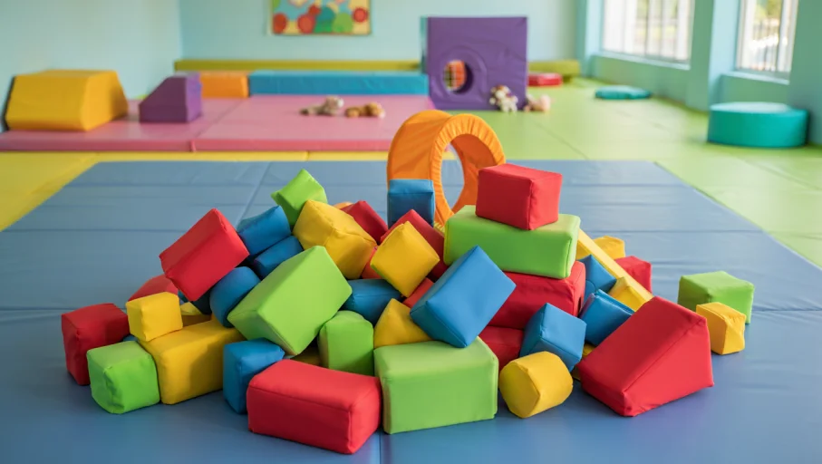 Foam mats and play blocks for toddlers.